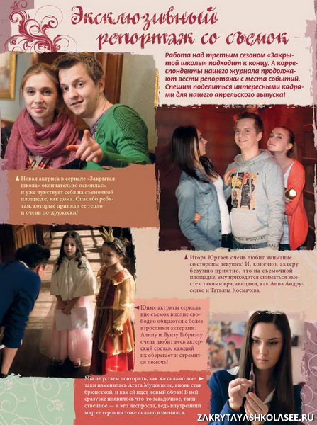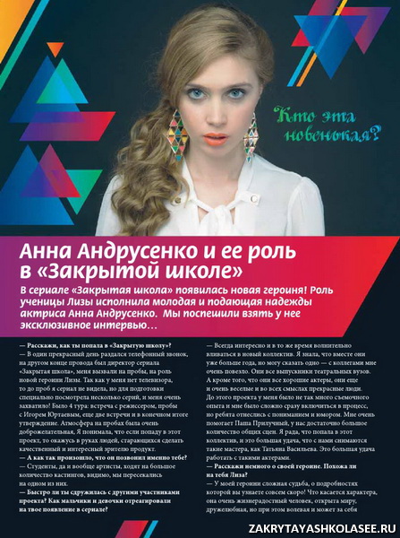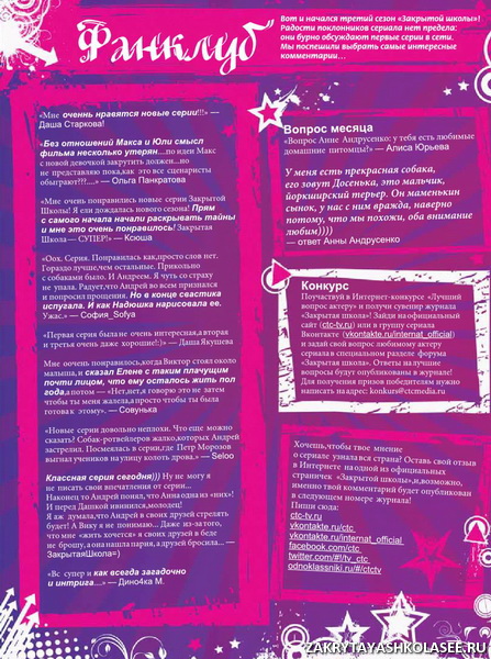В этом номере вы прочитаете про новую актрису сериала – Анну Андрусенко. Девушка рассказывает о своей героине, о том, как она попала в сериал, а также немного о своей жизни вцелом. В журнале опубликован новый фотоотчет со съёмок 3 сезона сериала. Ещё больше фоток, ещё больше подробностей со съёмочной площадки. Игорь Юртаев раскрывает очередную реальную тайну. В этом номере он затронул тему глубин океана. Также вы прочитаете очень много интересных фактов о современных субкультурах. Всё, начиная от гопников, заканчивая готами. Кроме того, психологи редакции приготовили для своих постоянных читателей очередной интересный тест.